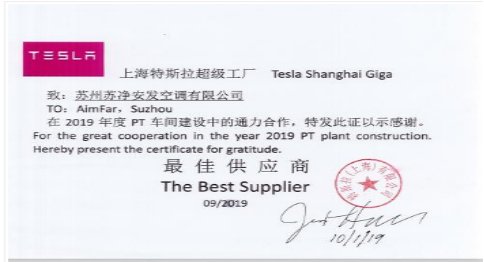 公司全资子公司江苏苏净下属公司苏净安发,通过多轮竞标,最终凭借良好的品牌、过硬的资质、全方位的项目跟进,承接了“特斯拉”涂装车间14套洁净空调机组的订单。特斯拉不仅是世界公认的电动车企业领军品牌,也是外国车企在中国独资建厂“第一家”,同时也是苏净安发从国内品牌车企转向国外中高端品牌车企具有“标杆性”和“里程碑”式的重要项目。