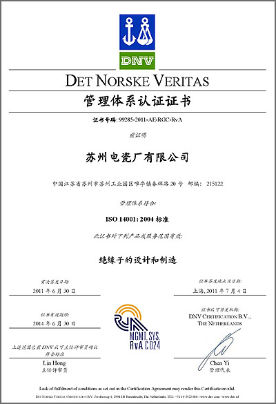 通过上述两项认证,苏州电瓷将进一步提高管理水平,提升产品档次,走可持续发展之路。(苏州电瓷提供)