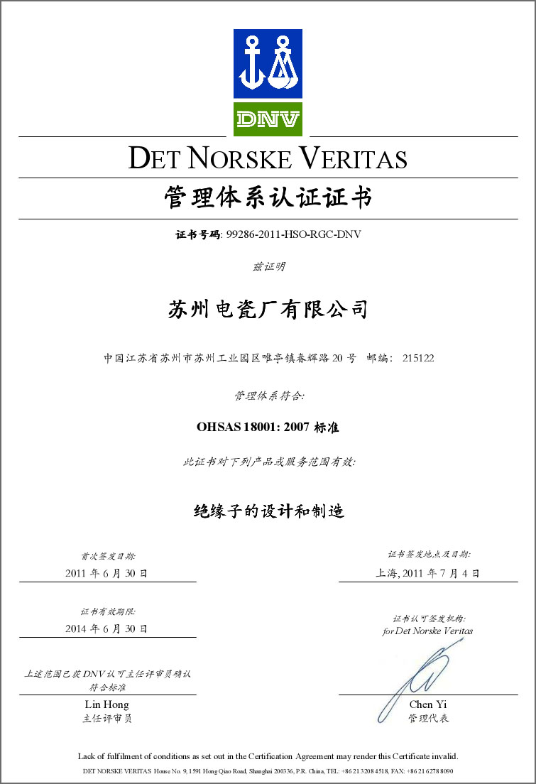 最近,公司控股子公司苏州电瓷厂有限公司通过了挪威船级社(DNV)颁发的两项管理体系认证:分别是ISO14001:2004环境管理体系认证,和OHSAS18001:2007职业健康及安全管理体系认证。